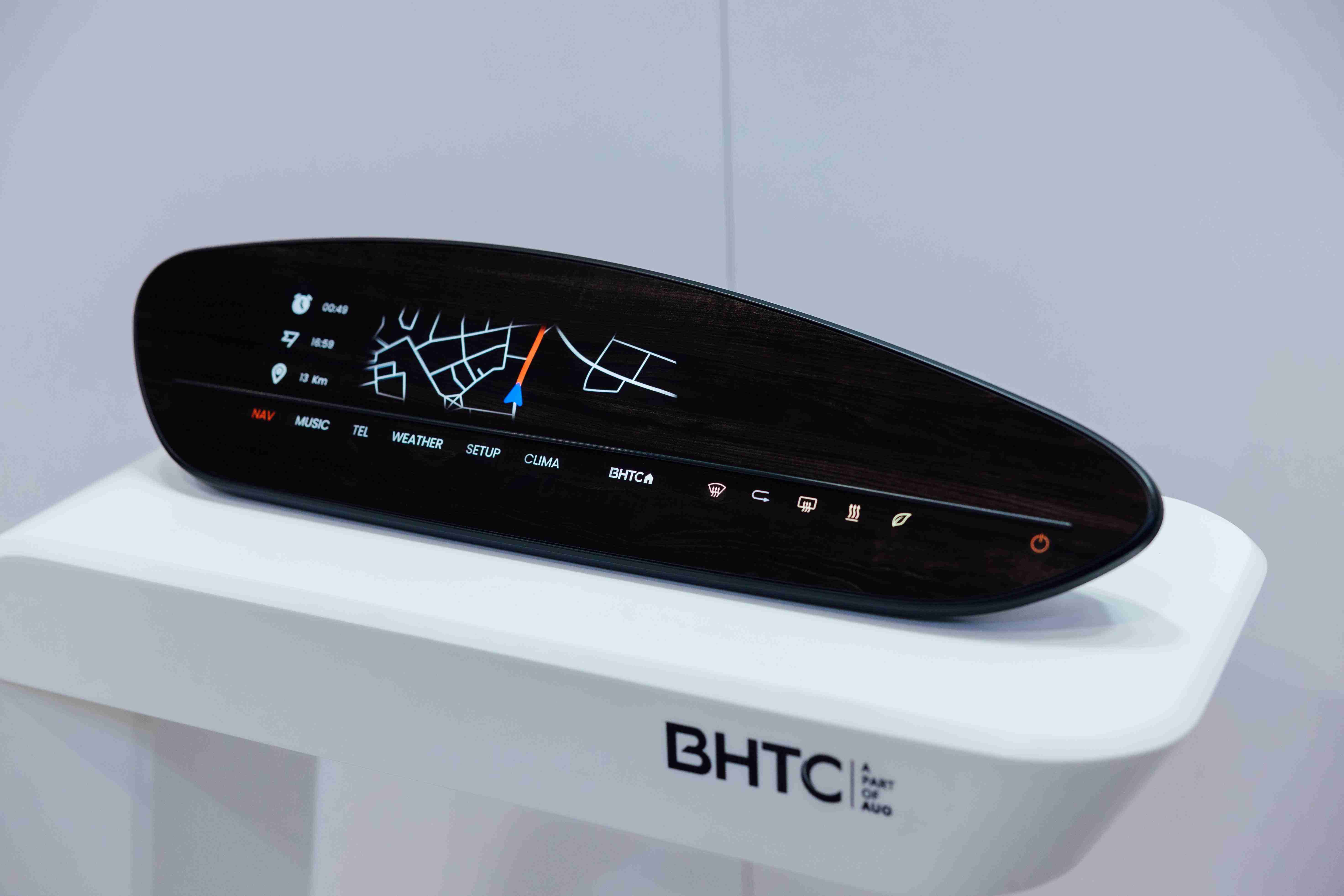BHTC的木纹车用显示器(Display Behind Wood)将无缝木质表面与显示器结合后,,,,可以融入车内设计中,,,,提供驾驶优质的视觉效果,,,加上其无边框的设计和亮度调控,,,,创造更优质的车内体验。。