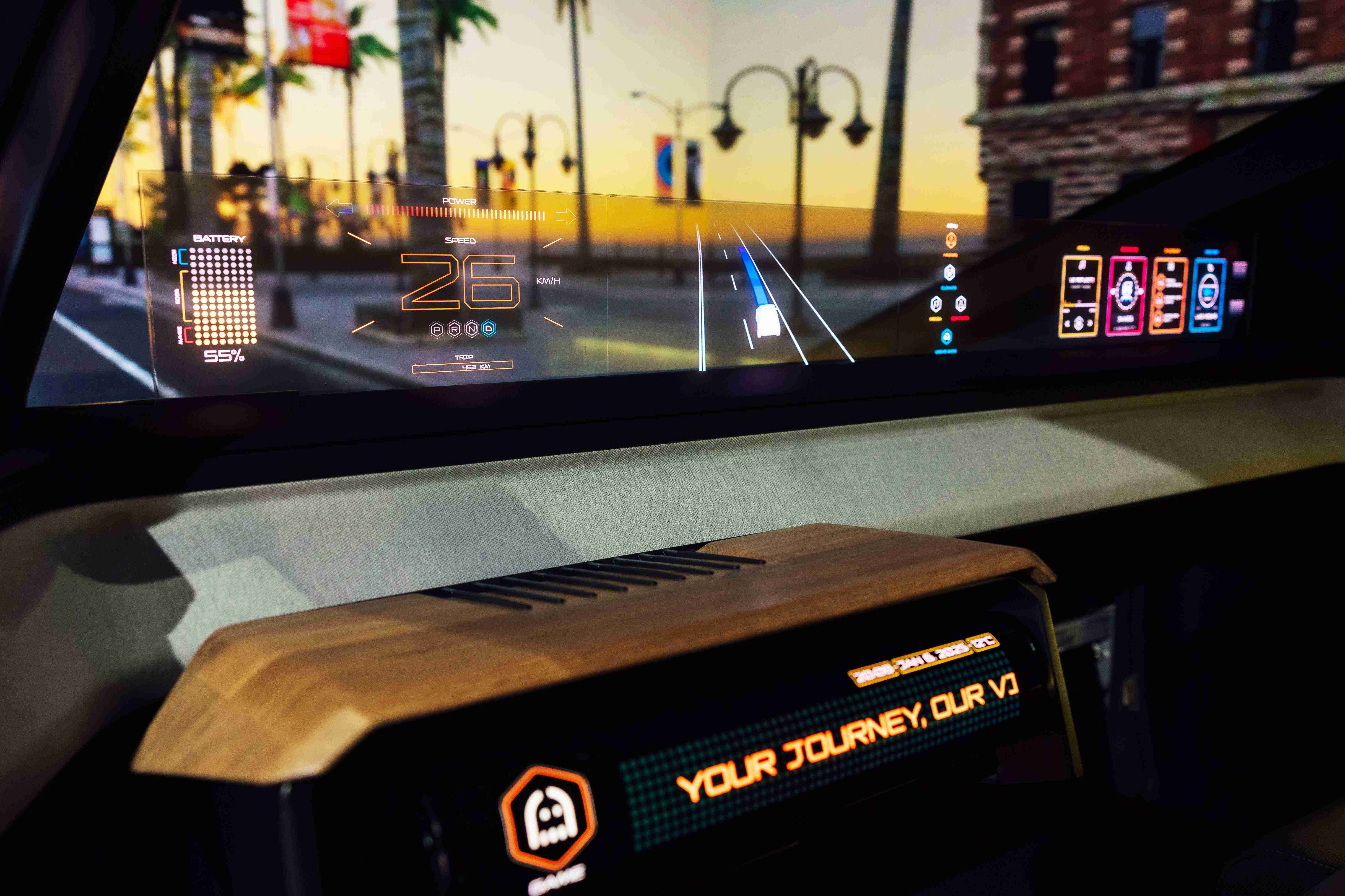 车用运算方案驱动无界透明显示介面(Horizon Image Glass),,,,整合仪表板、、中控及副驾显示功能为一体式全景呈现,,,,不仅提供清晰的外部视野,,,,亦能即时显示车辆状态、、导航及路况资讯,,,并赋予个性化设定与驾驶安全警示等加值化服务。。。